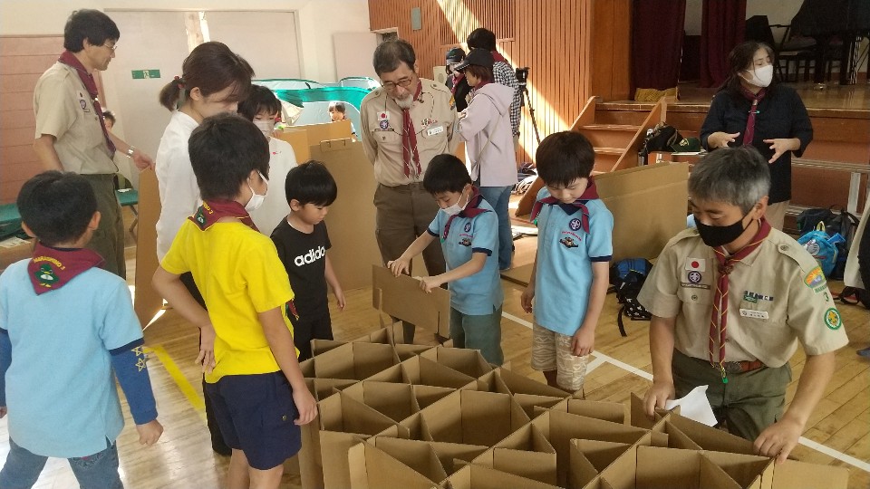 ビーバー隊(年長~小2) ビーバー隊 2023年12月 新春「ミニ門松」作り narashino3 2023年12月17日 2024年5月7日 2023年12月17日(日)市内公民館でお正月に飾る「ミニ門松」を作りました。竹とペットボトル、新聞紙、畳でベースを作り、松ぼっくりや扇で飾り付けをします。 「できたー!」ミニ門松の完成です。ものづくりを通じて季節や風習を感じ、普段とは違った気持ちでお正月を迎えられたのではないでしょうか。 なお、この日は先輩のローバースカウトが、毛布を巻くだけの即席担架やTシャツを使った担架の作り方を披露してくれました。いざという時、的確に行動するためにも、事前に知識と技術を学んでおくことが重要です。