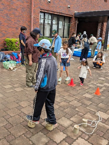 2024年4月27日(土)新習志野公民館の「おやこであそぼう」に参加しました。毎年、開催されている子ども向けのイベントで、ボーイスカウト習志野第3団も「魚釣りゲーム」と「竹ぼっくりで遊ぼう」で出展しました。