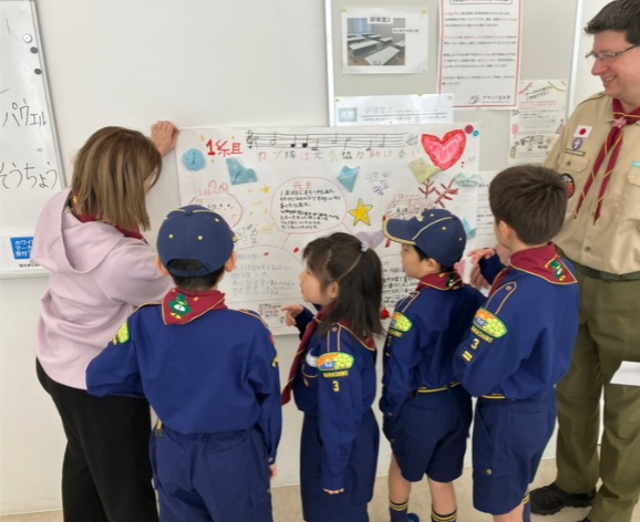 2組は「カブ隊の心にのこった事」をテーマに、大きな模造紙にぎっしりとこれまでの思い出をまとめました。